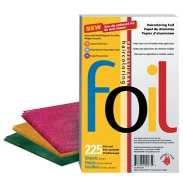 Product Club Handy Dandy Pre-Cut High Lite Sheets / 5"X8" / Assorted. Non-slip embossed haircoloring foil holds hair better. Assorted pack contains 225 sheets (75 purple, 75 copper, 75 periwinkle). Helps keep track of multiple shade applications. A perfect intro to color foil.