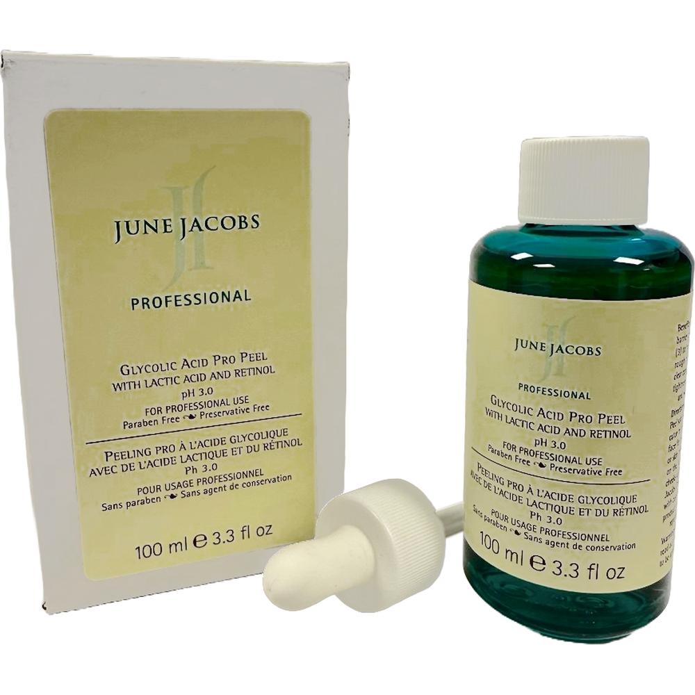 For professional application, apply **¼ teaspoon of the Glycolic Acid Pro Peel** solution with a cotton pad, fan brush, or peel applicator to cleansed skin. Begin at the forehead and work your way down the face, paying attention to the sides of the face, cheeks, and nose bridge. Allow the peel to remain on the skin for two to four minutes, depending on the client’s skin type or condition. Once the peel is ready, neutralize it with **June Jacobs Creamy Cranberry Cleanser**, and rinse thoroughly with cool water. Follow up with a toner, serum, eye product, moisturizer, and sunscreen. For optimal results, this peel can be repeated weekly, provided there is no irritation.