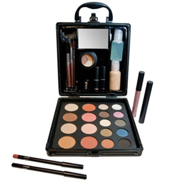 Professional Intro Portfolio Make Up Kit. Professional Make-up Kit. Contains the following items in a deluxe hard travel case: 10 eyeshadows, 4 wet/dry foundations, 4 blushes, mascara, eyeliner, lip liner, 2 lipsticks, lipgloss, concealer tri-pot, 1 oz. Instant Eye Makeup Remover, 1 oz. liquid foundation, brow/lash tool, angled liner brush, concealer brush, shadow brush, blush brush and a pencil sharpener.