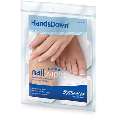 Professional Lint-Free 2" X 2" Nail Wipes / 200 Wipes Per Bag by HandsDown. Transform Your Services with Graham HandsDown Lint-Free Nail Wipes. Offer your clients an unparalleled nail care experience with Graham HandsDown Lint-Free Nail Wipes. These premium wipes are designed to cater to professionals who demand only the best for their clients, making each nail service a seamless and immaculate procedure.