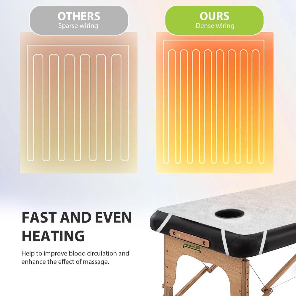 It combines the warmth clients love with the fit your table requires: a clean face-hole alignment, fast pre-heat, dependable temperature control, and durable fleece that stands up to daily use. The result is a premium experience with less mid-service fuss, better thermal consistency, and a more polished presentation for every appointment.