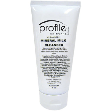 Profile Skincare Mineral Milk Cleanser / 6 oz. This fine formula, enriched with Aloe Vera, cleanses skin from make-up, dead skin cells, skin impurities and free radicals, leaving the skin soft and hydrated. Size: 6 oz.