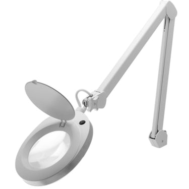 ProVue SuperSlim LED Magnifying Lamp / 5" 5-Diopter Round Crystal-Clear Glass Lens - 2.25x Magnification. LED Magnification lamp with a 5" 5-Diopter round glass lens (2.25x magnification). New modern, SuperSlim design. Use the adjustment knob to set precise lamp positioning. Ultra-bright and energy efficient LED lights.