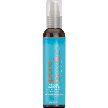 Pure Brazilian Shine Ultra Light Nourishing Oil / 4 fl. oz. - 118 mL. Ultra-Light Nourishing Oil features a proprietary blend of exotic oils, including Camellia Oil from Japan and Abyssinian Oil from Africa, along with seaweed and Vitamin E.