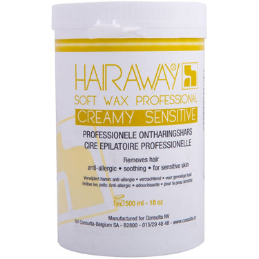 Resiné By HAIRAWAY® Creamy Sensitive Resin Wax / Strip Wax - Soft Wax / 18 oz. - 500 mL. Microwaveable Jar. Resiné By HAIRAWAY® Creamy Sensitive Resin Wax / 18 oz. Microwaveable Jar. A creamy, soft, hypoallergenic wax which greatly reduces redness and irritation using 100% hydrogenated esters of resin. Suitable for sensitive areas and clients who tend to bump up easily. We use the highest quality esters available making it less sticky and leaving a nice clean finish. Great for speed waxing.