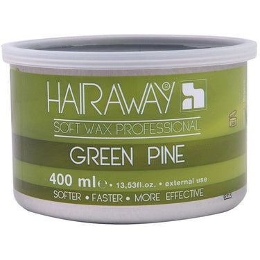 Resiné By HAIRAWAY® Green Pine Resin Wax / Strip Wax - Soft Wax / 14 oz. - 400 mL. Tin. Resiné By HAIRAWAY® Green Pine Resin Wax. A strong natural stabilized wax which gets the bulb of the hair upon removal while pine turbins desensitize the skin reducing redness and discomfort. The wax can be applied transparently thin onto both legs before removing with a strip and does not change consistency or crystallize. Great for speed waxing.