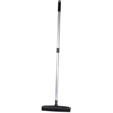 Rubber Broom With Telescopic Handle. Rubber Broom with Telescopic Handle. Rubber broom is specially designed to sweep hair. Its soft, durable bristles are perfect for hard to reach areas and crevices. Telescopic handle extends from 29" to 50-1/2", so you can adjust to your desired length.