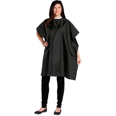 Scalpmaster Nylon Shampoo Cape 54" X 36", Velcro Black. Transform your salon experience with the Scalpmaster Nylon Shampoo Cape. This durable, high-quality cape is designed to keep your clients' clothing dry and protected during shampooing, cutting, and styling. With its generous size and Velcro neck closure, it's easy to use and provides a comfortable fit for clients of all sizes.