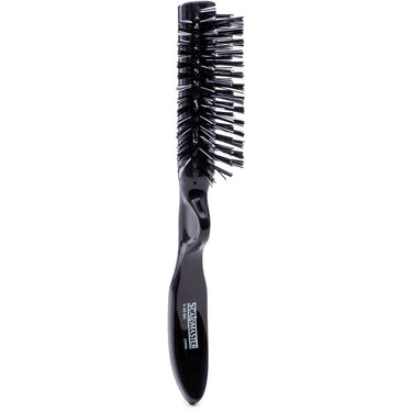 Scalpmaster Thumb Grip Salon Brush. 5 row nylon bristle black salon brush with thumb grip on handle.
