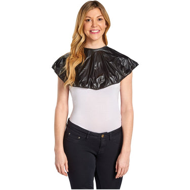 Scalpmaster Vinyl Comb-Out Cape / 26" X 26", Tie String Black. This Scalpmaster Vinyl Comb-Out Cape is an essential tool for any salon or spa professional who wants to ensure their clients' comfort during hair treatments. Made from high-quality vinyl material, this cape is durable and easy to clean, ensuring that it will last for years of regular use. Its generous size of 26" X 26" provides ample coverage, while the tie string neck closure ensures a comfortable fit for clients of all sizes.