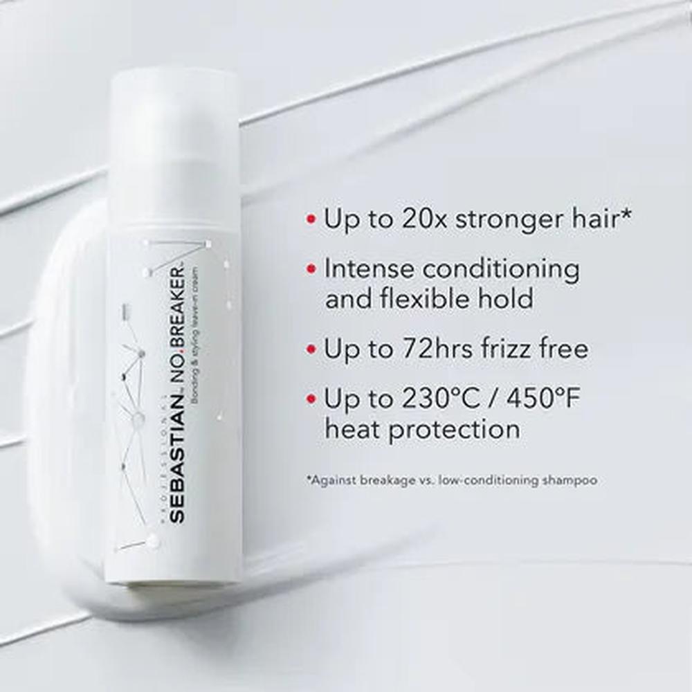 Sebastian No.Breaker Bonding and Styling Leave-In Treatment. Achieve stronger, healthier hair without sacrificing style with Sebastian Professional NO.BREAKER Bonding & Styling Leave-In Treatment. Designed for salon professionals, this leave-in cream provides dual-action benefits by strengthening hair while delivering flexible hold for creative styling. Whether your clients are looking for sleek, polished looks or voluminous, textured styles, this treatment offers the support they need to create beautiful results, all while protecting against heat damage.
