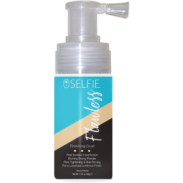 Selfie Flawless Finishing Dust / 1.75 oz. Selfie Glow's ultra-refined Flawless Finishing Dust is your secret weapon to a fast drying, luminous Selfie Sunless Glow! The melt-proof drying powder utilizes soft focus caffeine and black tea extracts to tighten the skin and minimize the appearance of pores. Your Selfie Glow deserves a Flawless Finish!