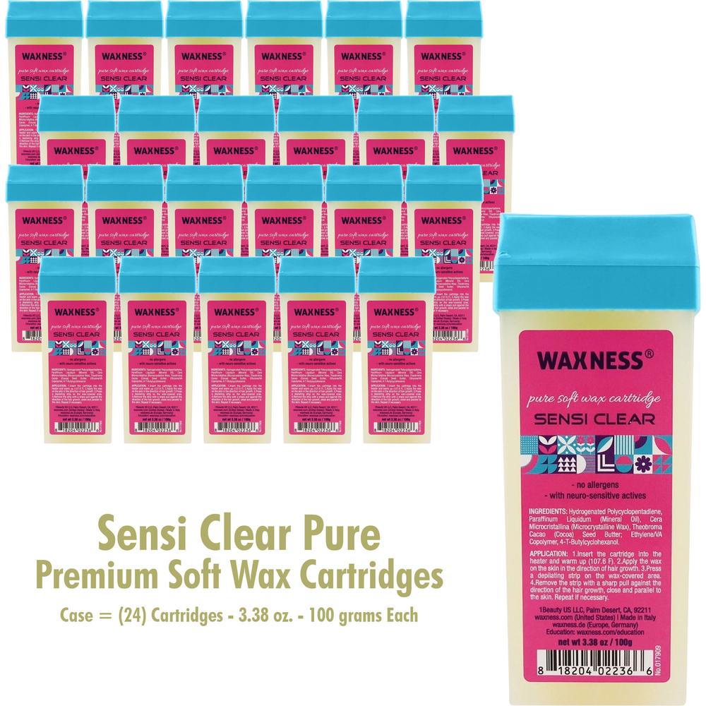 Waxness Sensi Clear Soft Wax Cartridge for Ultra-Sensitive Skin / Case of 24. When it comes to waxing ultra-sensitive skin, professionals can't afford to take chances. That’s why the Waxness Sensi Clear Pure Soft Wax Cartridge is a trusted go-to for estheticians who demand results without compromise. Designed with precision and purity, this hypoallergenic wax offers a calming, clean experience with every strip—no dyes, no fragrances, and absolutely no allergens. The clear, glass-like finish when melted isn't just visually appealing; it's a signal of the formula’s transparency, purity, and trustworthiness.