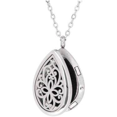 Serina & Company - Stainless Steel Floral Tear Drop Pendant | Aromatherapy Jewelry for Retail!