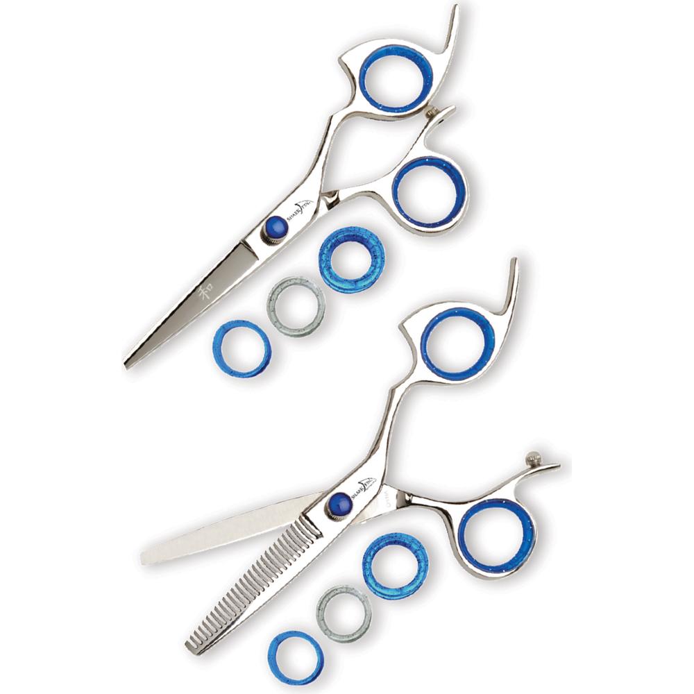 - The 5-1/2" cutting shear features a convex edge, ideal for achieving clean lines and perfect finishes, while the 28-tooth thinning shear effortlessly blends and textures hair for seamless results.