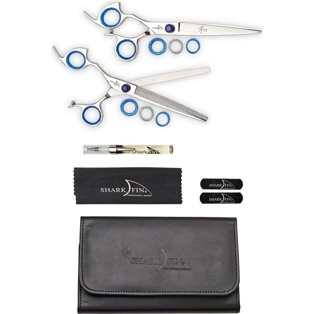 But the benefits don't end there. Shark Fin understands that comfort is key during long hours of styling. That's why this kit comes with two sets of Shear Fit™ finger-fitting rings, ensuring a snug and ergonomic fit for all your shears and razors.