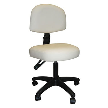 Silhouet-Tone Comfort Air-Lift Stool With Frontward-Backward Adjustable Backrest / 17" to 22" Height. Ground your work with this stable and supportive comfort stool with frontward-backward adjustable backrest. Enjoy a wider seat cushion for maximized support. Five whisper-quiet rolling casters on a large stable base make this stool a simple addition to your treatment room with easy access to supplies and a generous 3" padding for superior comfort and quality. The stool also features a hydraulic piston for smooth height adjustments. With a variety of upholstery options, the stool can be suited to match any decor. All upholstery is flame-resistant and easy to maintain with gentle cleansers.