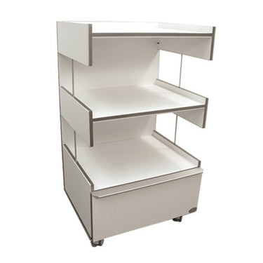 Silhouet-Tone Workstation ML500 Trolley. The simple and practical trolley fits perfectly into any work environment and adapts to your needs. Conceal your tools in the drawer, and use the 3 shelves to set up your accessories and supplies. It is equipped with 4 quiet castors, making it easy to move and handle. Top shelf dimensions: 16" x 20". Overall dimensions: 20" W x 35" H x 18" D.