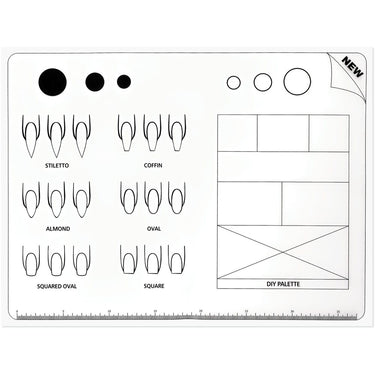 Silicone Nail Art Stamping Mat. Silicone Nail Art Stamping Mat. Nail art mat provides the perfect work surface for practicing designs and creating custom decals for a variety of nail shapes. Features 18 nail tip guides, 6 circles for testing color combinations, a DIY palette section, and a ruler. Reusable silicone surface allows for easy cleaning and can be folded or rolled up for storage or travel Measures 15-1/2"W x 11-3/4"H.