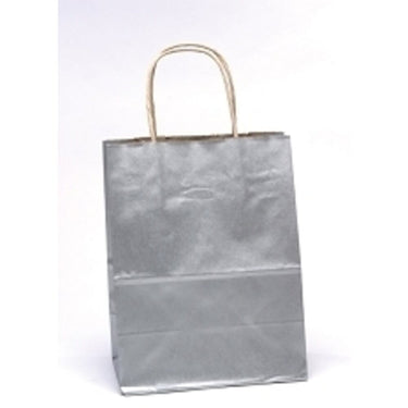 Silver Solid Gift Bag 7.75" x 3.75" x 9.75" Versatile & Sturdy Packaging for Your Spa or Salon. The Silver Solid Gift Bag 7.75" x 3.75" x 9.75" is the perfect solution for your spa or salon's retail needs. Whether you're packaging a special product for clients or preparing a beautiful gift for a valued customer, this silver bag brings a touch of elegance and practicality. Designed to suit a variety of items, it provides the durability you need while adding a refined, upscale look. When you choose this gift bag, you are ensuring that your clients receive their purchases with the quality they deserve, reflecting the care and attention that you put into your services. Its a thoughtful, high-quality choice that helps you elevate your client experience and boost the perceived value of your retail offerings.