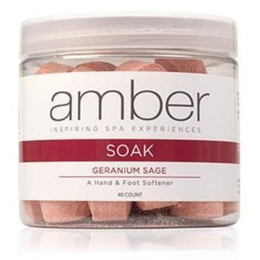 Amber Products Geranium Sage Hand & Foot Soak. Transform your spa treatments with the rejuvenating power of Amber Products Geranium Sage Hand & Foot Soak. Designed to deliver an indulgent spa experience, these effervescent tablets soften skin, condition cuticles, and prepare hands and feet for ultimate care. Infused with a blend of essential oils and minerals, this soak creates a soothing, aromatic environment, elevating your services to the next level.
