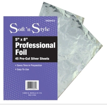 Soft 'N Style 5X8 Individual Sheets Of Foil, Silver / 45 Sheets. Looking for a convenient way to save time and money when it comes to foil highlighting? Look no further than Soft 'N Style 5X8 Individual Sheets Of Foil in Silver! These pre-cut sheets are the perfect size for highlighting hair and come in a convenient pack of 45. You'll love the ease and convenience of using these sheets, which are made from high-quality foil that won't tear or rip during use. Plus, the sleek silver color will give your highlights a beautiful, professional look that your clients will love. Say goodbye to wasteful, cumbersome rolls of foil and try Soft 'N Style 5X8 Individual Sheets Of Foil today!