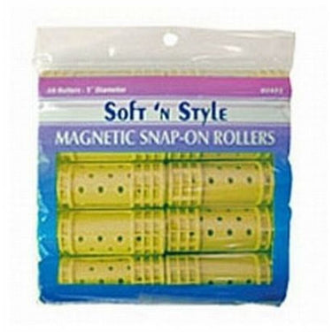Soft 'N Style Medium Magnetic Snap Roller. Looking for a reliable and effective hair styling tool for your salon or spa? Look no further than the Soft 'N Style Medium Magnetic Snap Roller. These 3/4" medium yellow magnetic snap on rollers come in a convenient 12-pack, making it easy to keep your inventory stocked and ready for your clients. But it's not just about quantity - these rollers are designed with high-quality materials and a magnetic snap closure for a secure hold that won't slip or slide during use. Your clients will love the comfortable and gentle hold, and you'll love the convenience and durability of these must-have rollers. Don't settle for less - upgrade your salon or spa with the Soft 'N Style Medium Magnetic Snap Roller today.