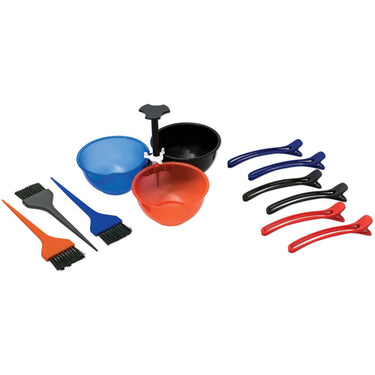 Soft 'N Style Tint Bowl Kit. Tint bowl set includes: 3 Lightweight plastic tint bowls, 3 Tint brushes, 6 Extra large sectioning clips and a uniquely designed holder that supports up to 3 tint bowls and locks them in place.
