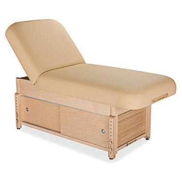 Sonoma Facial Spa Treatment Table Cabinet Base by Living Earth Crafts. A multi-purpose stationary spa treatment table offers quality performance at an exceptional value. The Sonoma is ideal for private practitioners, gyms, fitness centers or home use. Crafted from solid maple, the Sonoma has adjustable legs, a sturdy frame. The versatile Sonoma Facial top with its non-electric PowerAssist tilt option offers limitless possibilities at an incredible value. Using the One Touch lever, a technician may adjust the back tilt to the perfect angle. Infinite adjustability. Adjustments can be made with the client on the table, allowing you to provide massage, facials, manicures, and more.