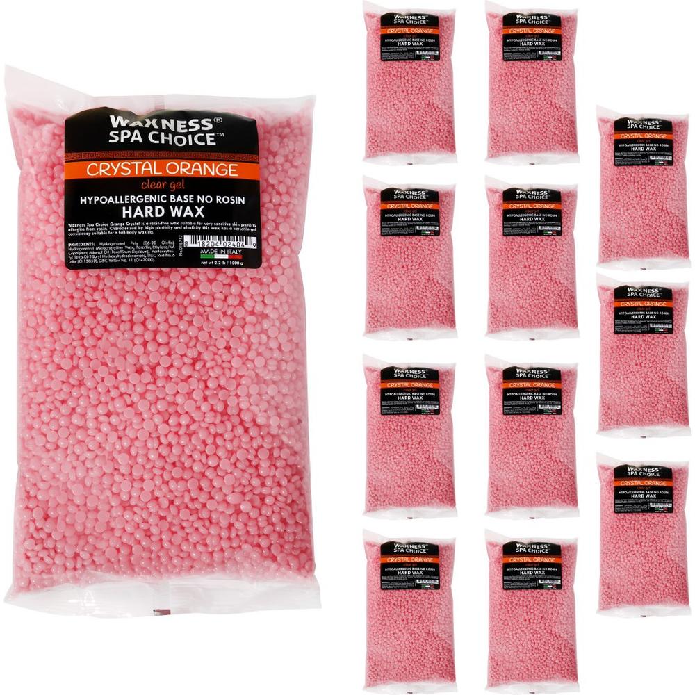 Spa Choice Crystal Orange Rosin Free Gel Hard Wax - Made in Italy / 26.4 Lbs. Total = 2.2 lbs. - 35.27 oz. - 1 kg. Each X 12 Bags by Waxness