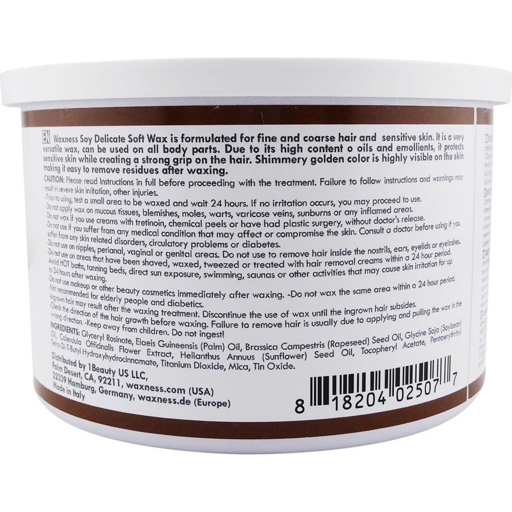 Waxness Spa Choice Soy Gentle Soft Wax is an indispensable ally in your waxing toolkit, designed to deliver exceptional performance while providing the utmost care for your clients' skin. Whether you are dealing with fine or coarse hair, this versatile wax adapts to all hair types, ensuring a smooth, efficient, and comfortable hair removal experience. It is specifically formulated to cater to the delicate needs of sensitive skin, making it perfect for areas requiring extra attention.