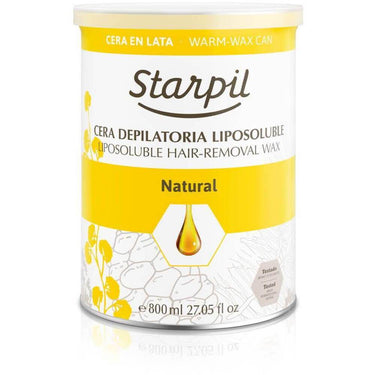 Starpil Natural - Soft Strip Wax from Spain / 800 mL. (27 oz.) Can X 6 Cans = 1 Case. Our natural variety is perfect for all skins types. Its excellent combination of pine resins makes a great combination body waxing. Made from special pine resins vegetable and mineral oils. These sticky non-drying waxes are formulated for use with starpil hair removal strips.