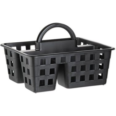 Storage Caddy. Perfect for storing brushes, bottles, jars, cosmetics, manicure/pedicure tools and hair accessories. Convenient handle makes it easy to carry. Sturdy plastic construction. Black color.