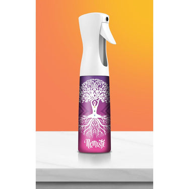 Stylist Continuous Spray Bottle - Namaste Design (10.14 oz). Enhance your professional toolkit with the Stylist Continuous Spray Bottle in the serene "Namaste" design. Crafted for spa and salon professionals, this bottle combines functionality with an aesthetic appeal, making it a must-have for anyone in the beauty and wellness industry. Whether you're misting clients' hair, prepping surfaces, or enhancing the ambiance with essential oils, this bottle ensures efficiency and ease in every application.