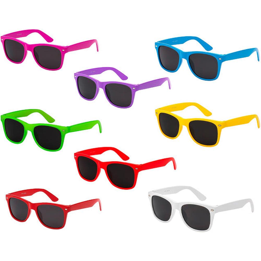 Sunglasses Kids Retro Neon UV400 Party Collection. Delight young guests and retail customers alike with sunglasses that effortlessly combine playful style with essential eye protection. These Kids Retro Neon Sunglasses are more than just accessories – they are a simple yet powerful way to elevate every event, retail counter, or service package you offer. With their vibrant assorted neon colours and classic wayfarer-inspired frames, these sunglasses promise smiles, confidence, and UV400 protection for ages 3 and up.