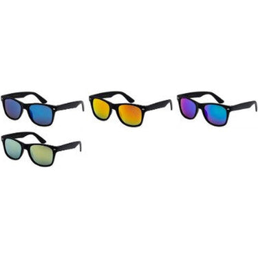 Includes: (1) Pair of assorted-color wayfarer sunglasses for kids aged 3–10. Color chosen at random during fulfillment.