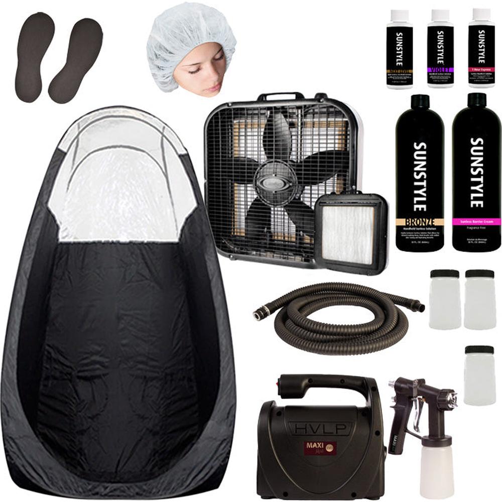 Sunless Spray Tan Business Kit Elite Evo – salon-ready results, mobile flexibility, rapid ROI. Build a profitable spray tan service from day one with a professional kit that keeps quality, hygiene, and speed front and center. The Sunless Spray Tan Business Kit Elite Evo combines a powerhouse HVLP system with an overspray solution, premium tent, and curated Sunstyle formulas so you can deliver consistent, camera-ready color on every client. From salons adding a new revenue stream to mobile artists who need reliable gear on the go, this bundle is engineered to help you launch fast, work efficiently, and keep clients glowing.