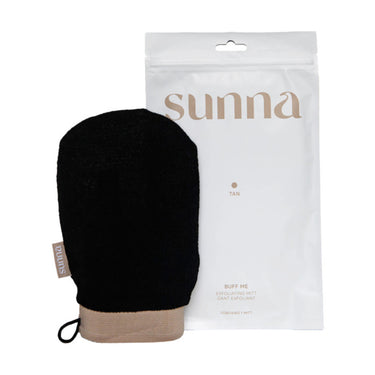 Unlock Your Smoothest Skin with Sunna Exfoliating Mitt. Revamp your skin care routine and prime your skin for a flawless sunless tan with the Sunna Exfoliating Mitt. Forget the hassle of messy scrubs that can obstruct the development of your tan. Instead, welcome the sensation of the Buff Me Exfoliating Mitt smoothly gliding over your skin, gently eliminating heavy oils and barrier ingredients that can interfere with your tan's uniform development.