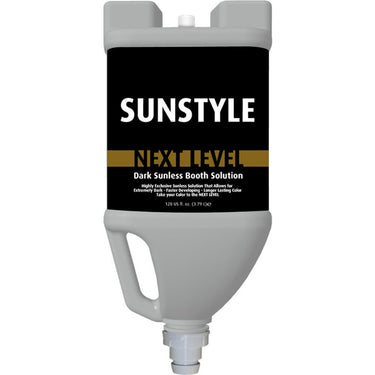 Sunstyle Sunless - Next Level Vented Booth Solution / 128 oz. - 1 Gallon. Take your sunless tan to the Next Level. This formula features increased DHA and cosmetic bronzers for those seeking the darkest, most natural sunless tan. This solution is not for the faint of heart!