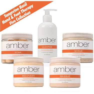 Tangerine Basil Hand & Foot Therapy Five Collection - Cleanse, Soak, Scrub, Masque, Recovery by Amber Products