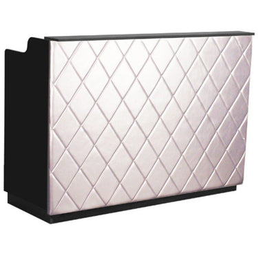 The Le Beau Reception Desk - 60" Wide - Black Structure / Silver Façade by Deco Salon Furniture. Greet your clients with the stylish Elizabeth Reception Desk. The Elizabeth Reception Desk will enhance your dcor with its classic French Style tufted front. It features an adjustable desk top at can be changed from sitting height or standing height.