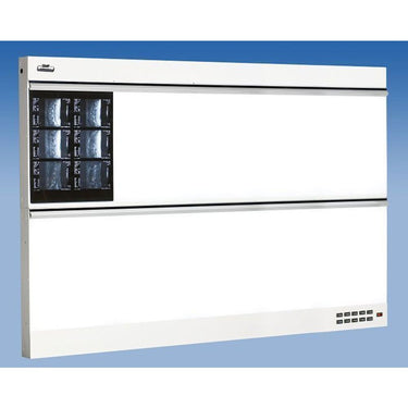 The Liberator Hi-Lo Viewbox / 5 over 5 (6 Bulb) by Wolf X-Ray. The most unique viewbox ever built. Never lose a film again! Wolf liberator series ingeniously attaches the film grip to the plexiglass to form a perfect film holding assembly that never goes out of alignment. The entire plexiglass panel & grip assembly come off quickly and effortlessly with a simple pull. The Magna-Lock assembly holds the panels in place until you want to get inside. Changing a light bulb or cleaning inside the panel was never this simple. Whether it's installation, service, or operation the Liberator is at the top of the class. Perfect viewbox for use in any medical setting. The Liberator has patented features no other viewbox can offer!