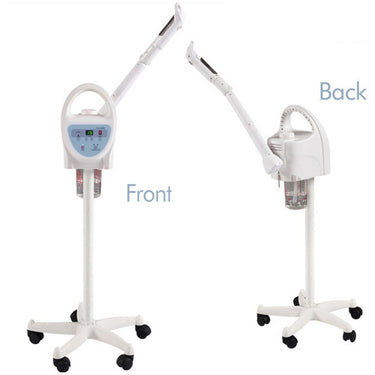 The Saskia Digital Ozone Facial Steamer with 5 Wheel Base. This versatile Digital Ozone Facial Steamer is used to improve blood circulation, open the pores, and generally revitalize the skin. The addition of ozone to the steam helps to further soften the solidified sebaceous caps so that they can be more easily removed. A natural germicide, ozone enriched steam helps promote a more sterile environment. This all-digital unit includes a timer as well as vapor and ozone functions.