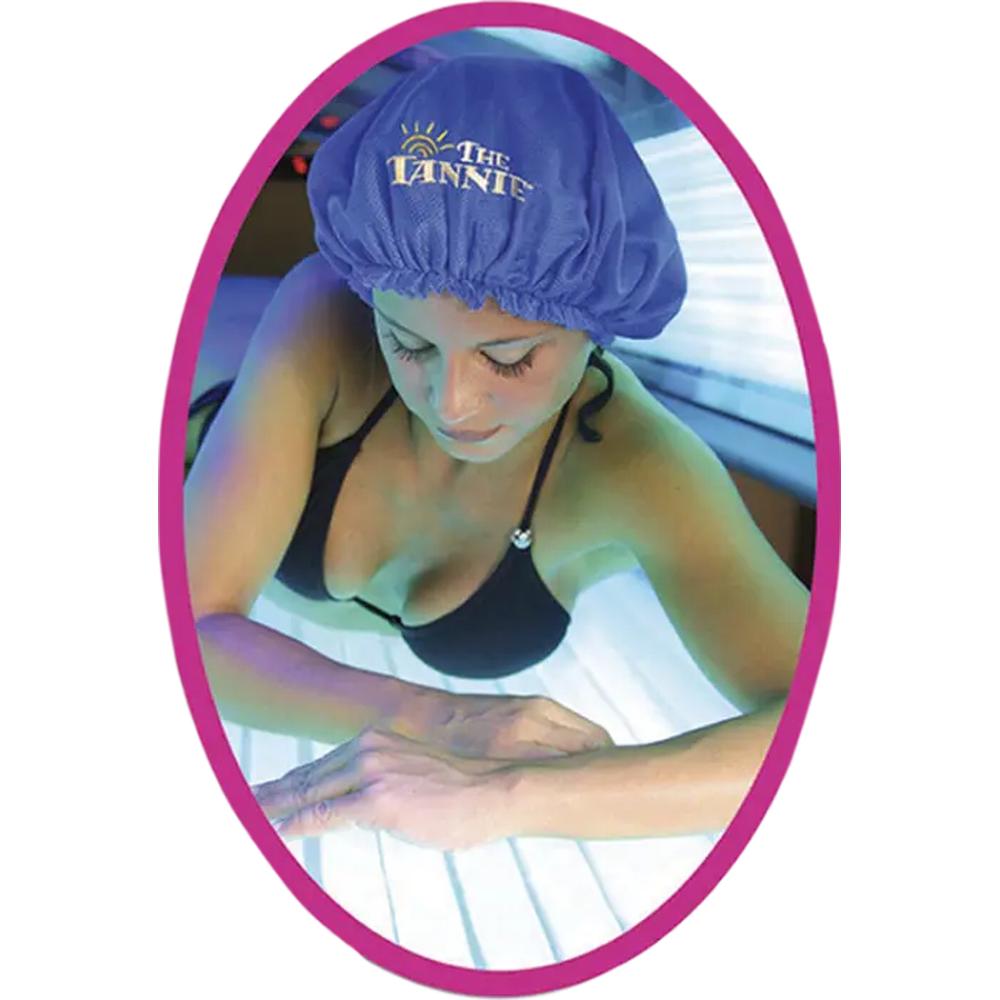The Tannie Hair Bonnet. Embark on a journey of ultimate hair care and protection with the Tannie Hair Bonnet. Crafted for beauty professionals who value both form and function, this innovative bonnet is designed to keep your clients' hair in top condition, even during tanning sessions. Its remarkable design blocks harmful UV rays, preventing hair from becoming dry, brittle, or discolored. Whether you're offering tanning services in your spa or retailing to clients who demand the best, the Tannie Hair Bonnet is an essential tool for protecting their investment in beautiful, healthy hair.
