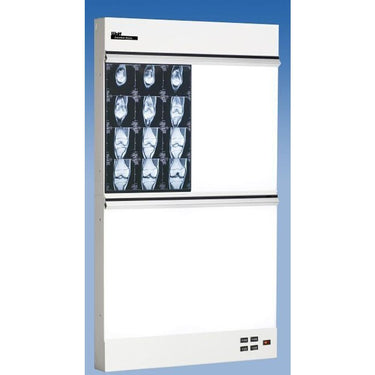 The Trimline Basic Illuminator / 2 over 2 (2 Bulb) by Wolf X-Ray. The Trimline Basic brings quality and durability. The Basic Illuminator 2 over 2 features two viewing boxes on top of two viewing boxes. Each viewing area has 2 bulbs (2,200 Candela per square meter), per 14" by 17" viewing area. Total viewing area dimensions are 28" x 34."