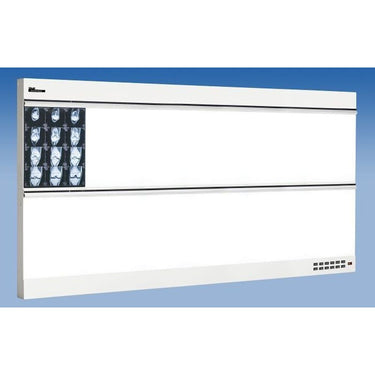 The Trimline Basic Illuminator / 6 over 6 (2 Bulb) by Wolf X-Ray. The Trimline Basic brings quality and durability. The Basic Illuminator 6 over 6 features six viewing boxes on top of six viewing boxes. Each viewing area has 2 bulbs (2,200 Candela per square meter), per 14" by 17" viewing area. Total viewing area is 84" x 34."