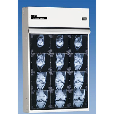 The Trimline Basic Illuminator / Standard 14"x17" (2 Bulb) by Wolf X-Ray. The Trimline Basic brings quality and durability. The Basic Illuminator Standard model features 2 bulbs (2,200 Candela per square meter) per 14" by 17" viewing area. Total viewing dimensions are 14" x 17."