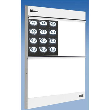 The Trimline Plus Hi-Lo features a sleek 3-1/4 deep cabinet with a baked on white polyurethane finish, a roller grip film retainer, film activated auto switches (the illuminator goes on automatically when film is inserted), and cluster switches on 2 over 2 units and up. The Trimline Plus Hi-Lo is available in any one of 12 sizes.