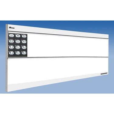 The Trimline Plus Hi-Lo Illuminator / 6 over 6 (6 Bulb) by Wolf X-Ray. The Trimline Plus Hi-Lo 6 over 6 Illuminator provides two light intensities per each 14 x 17 viewing area. You can go from 5,150 to 7,250 Candela per square meter at the push of a button. Illumination is from 6 lamps in high intensity, to four lamps in low intensity.