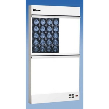 The Trimline Plus Illuminator / 2 over 2 (4 Bulb) by Wolf X-Ray. The TrimlinePlus Illuminator 2 over 2 offers four lamps (5, 150 Candela per square meter) per each 14" by 17" viewing area. Features two 14" x 17" viewing boxes on top of two 14" x 17" viewing boxes. 34" x 28" of viewing area.